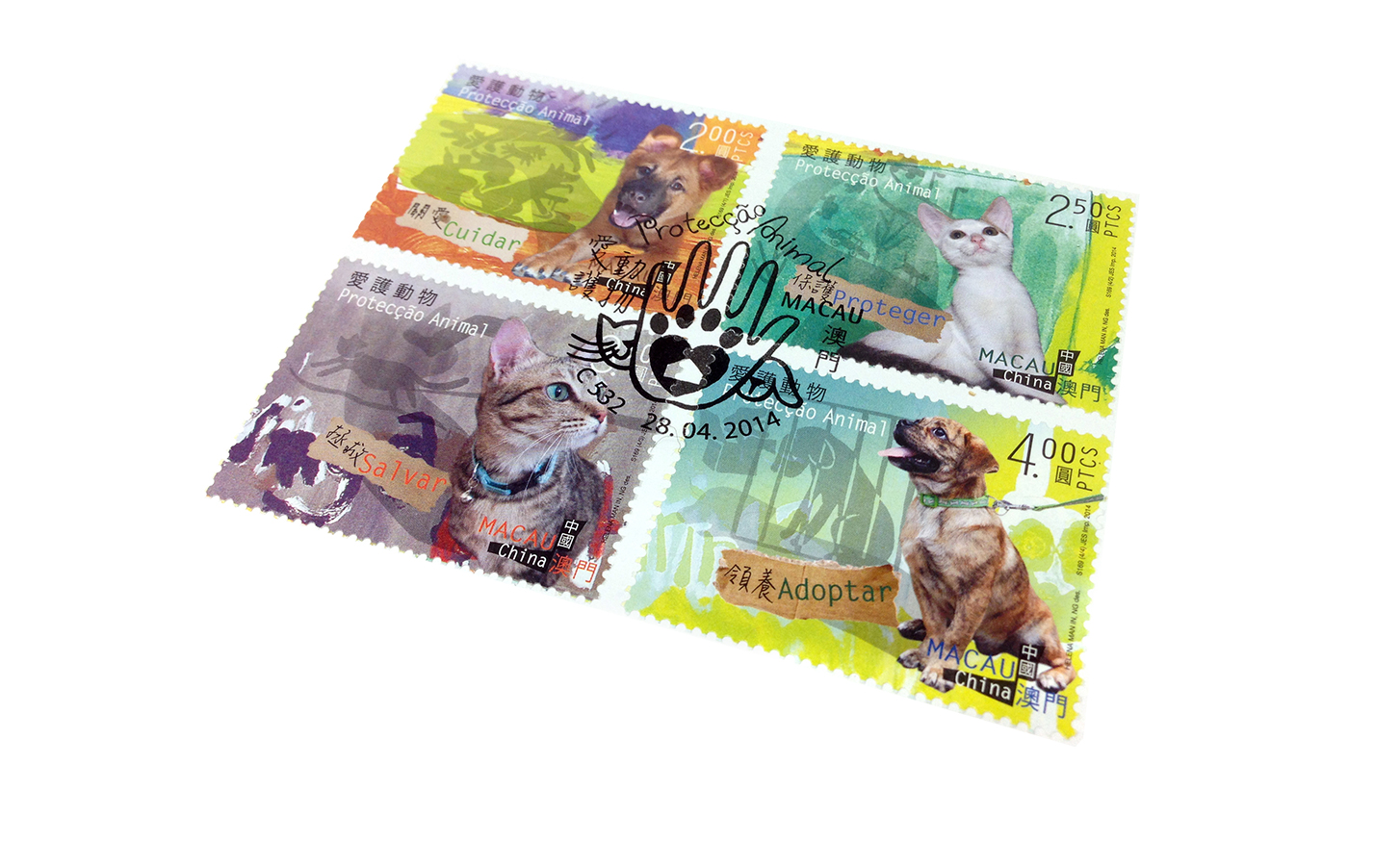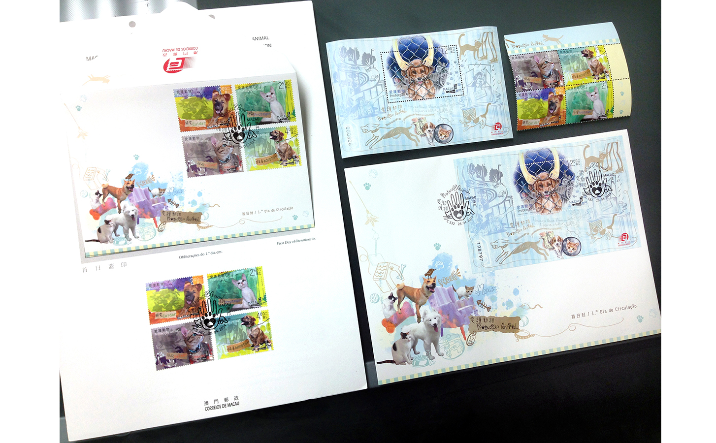 Seeing so much animal cruelty happening everywhere especially in Asia and many animals are left homeless, I proposed a special stamp collection series design to Macau Post Office on "Care, Protect, Save & Adopt" for animals and got accepted.