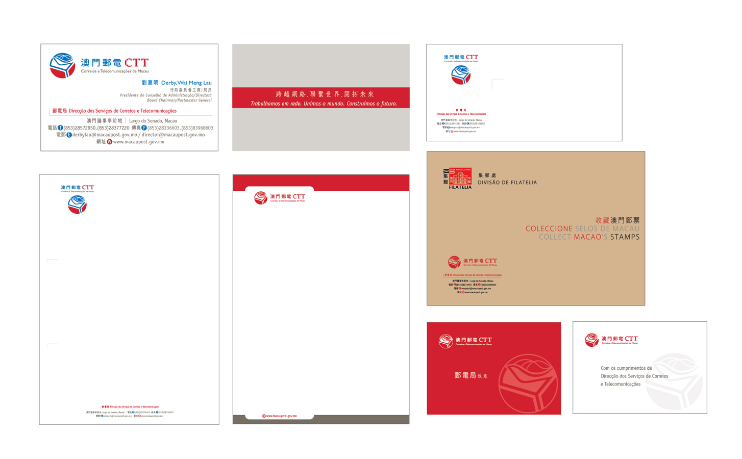Redesign a new identity for Macau Post CTT as the Post Office merges with the Department of Telecommunications. The new branding look has to convey both the traditional mailing service it provides and also its new direction in supporting the era of the modern communication services needed in the market.