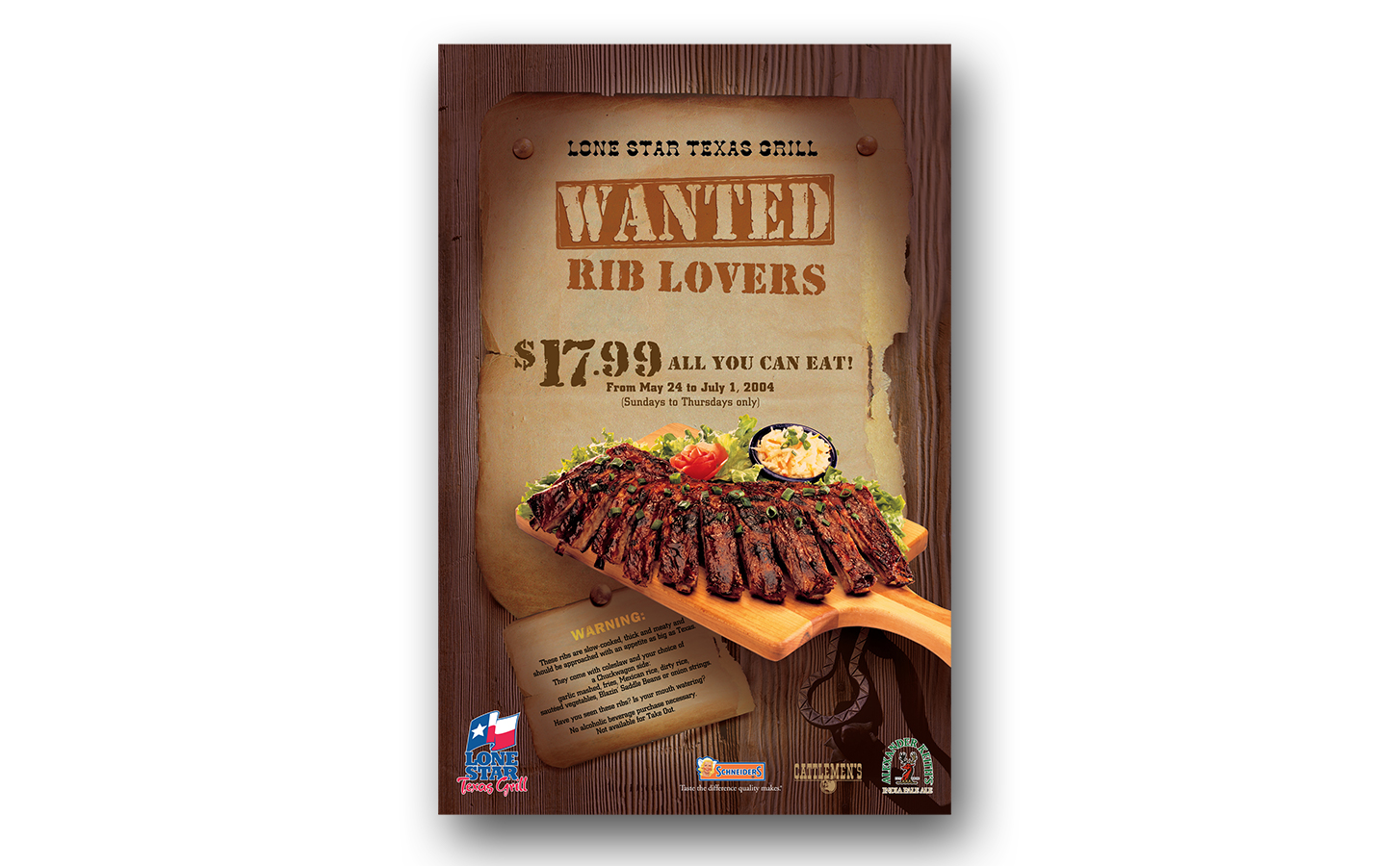 Poster & menu design for the special advertising campaign of Lone Star Restaurant