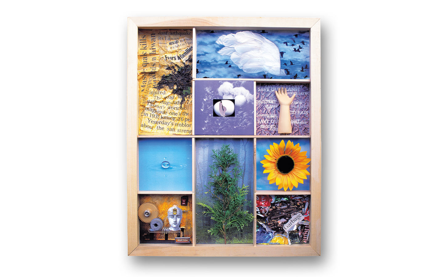 The theme of the poster is to reflect the significance of environmental conservation. “To conserve or collect?” The concept is to ironically put together the different essential element from the human world inside a collectible box. This symbolizes that human only cares for appearance, but keeps destroying the world by creating harming materials and not conserving it. At the end, we will end with the same fate - losing our living power.