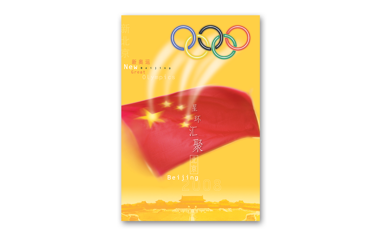 This poster is created to celebrate Beijing’s victory for the 2008 Olympics. Simply relating the five stars of the Chinese flag to the five rings of the Olympic Games symbolizes that the new Beijing will as a meeting place for all the athletes from over the world to join and shine together, giving out the great spirit of the Olympics.