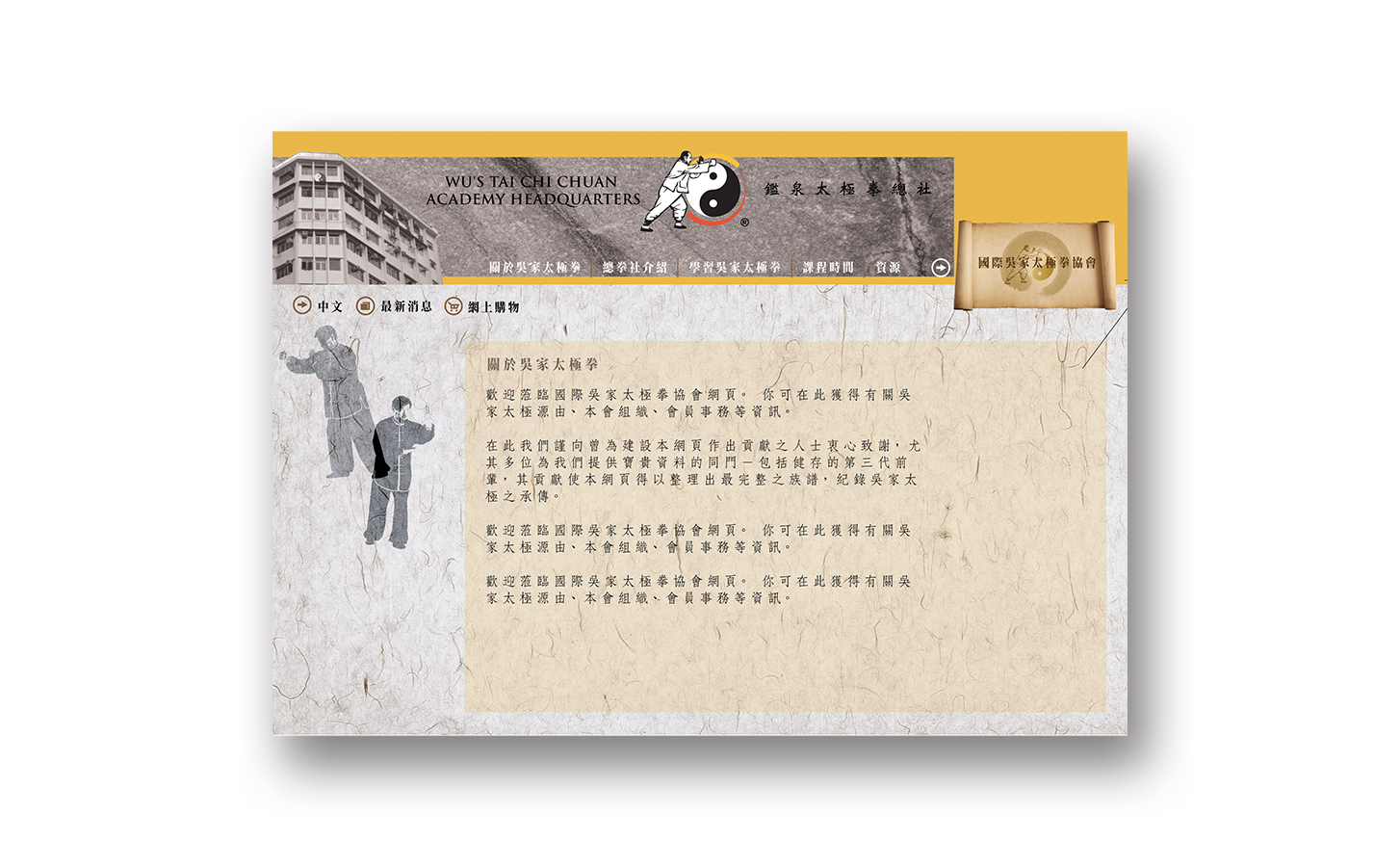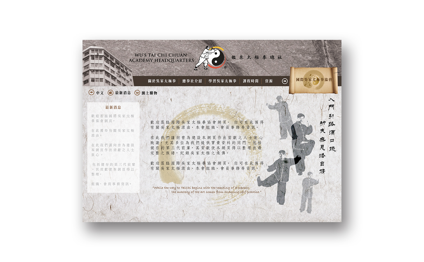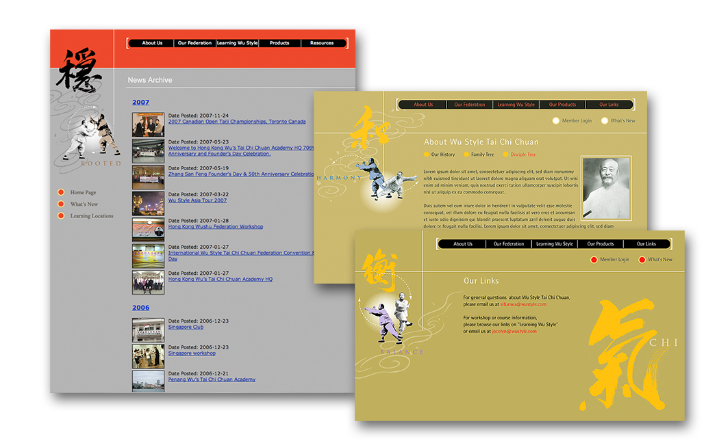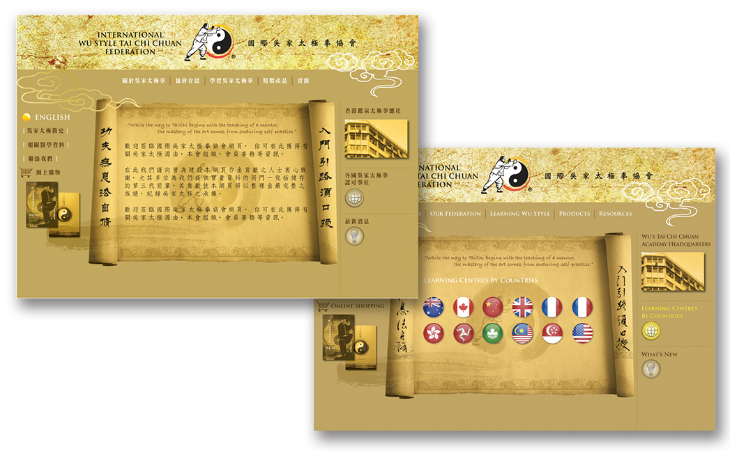 The website, all about Wu Style Tai Chi Chuan, is created to promote its significance in the history of Tai Chi Chuan and reputations around the world. Its objective is to unify its styles and forms in all over the world and to create a strong, recognizable corporate branding for its international Federation as a renowned international organization.