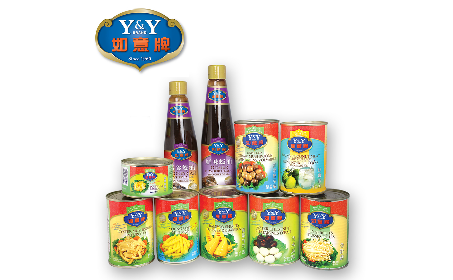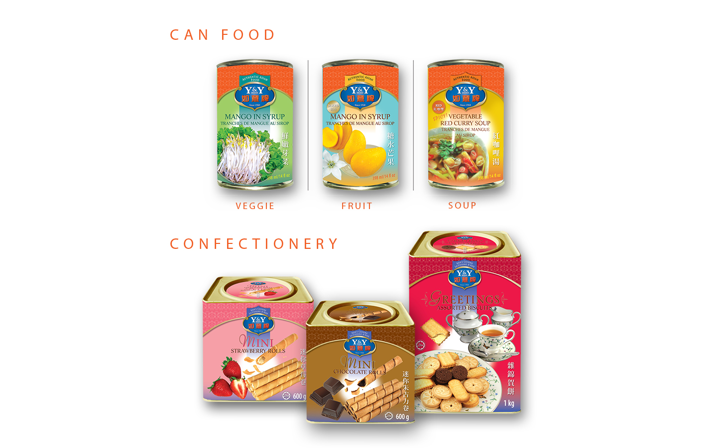 Redesign the complete branding system for the Y&Y Brand, a famous across Canada Asian food products in the market since 1960. The challenge is to refresh the product series with a more modern design, yet keeping the authentic and sophisticated look; and also to build up a strong and user-friendly product categorization system for more than 200 existing and expanding food lines. Design items include brand logo development, product categorizations & colour systems, branding applications on all packaging series, product photoshooting, news ads and web design.
